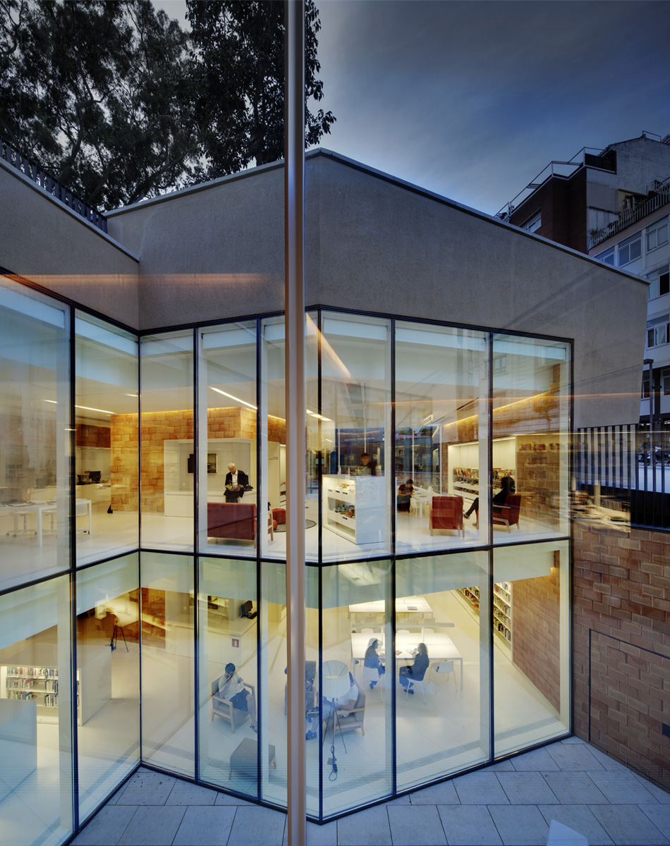 The library inserts under the garden Vil·la Florida under the shade of its trees. The new building fits under the ground like a child hides (to read a book) under a carpet. Inside, a landscape in itself, articulated and changing where each use and each user find their place. It is a personalized and unique space.